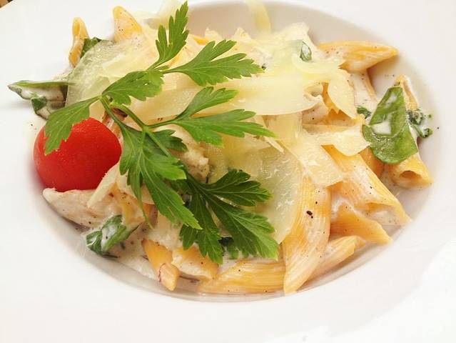 晚餐还是到昨天那家四星级酒店餐厅用餐,某人爱上了他家的炸猪排,又来上一份,我则选了一款意大利鸡肉管面,奶香十足,很是美味 他家的炸洋葱圈味道也不错~