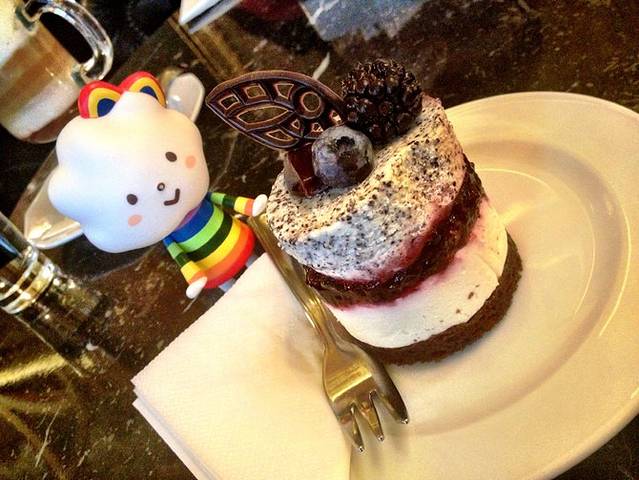 BOOKCAFE 招牌咖啡和覆盆子慕斯(这么这么丰富的奶油。。实在不是我的菜,点错了 )