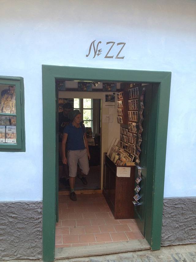 随着人流走到黄金巷,卡夫卡故居就在这条巷子的22号^_^这条巷子里有很多可爱的手工艺品商店,还有手工护肤品店、玩偶店。哦对了,还有炼金术士