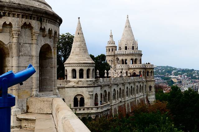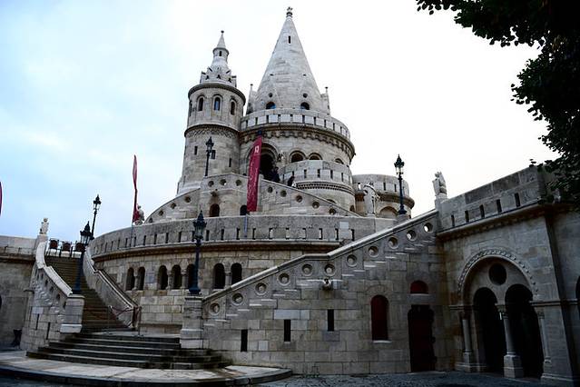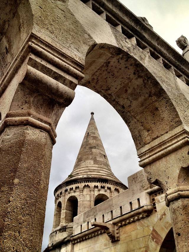 马加什教堂旁边,就是美丽的渔人堡 在布达佩斯,这是我最喜欢的景点。这座具有古罗马风格的建筑十分别致,看着它,我总觉得这里应该是有浪漫爱情故事的地方但其实这里原来是个鱼市,后来渔民们为了保护自己的利益,建造了这座城堡作为防御之用。