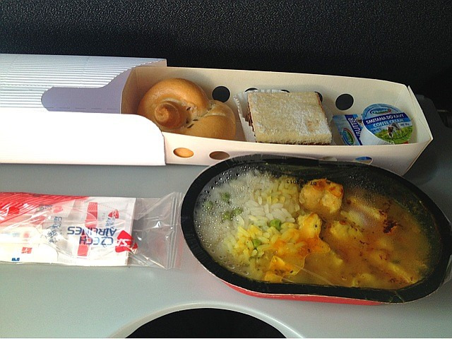 在莫斯科转机的飞机是捷克航空,鸡肉饭的味道比俄航的好,小点心的摆放也比较精致~