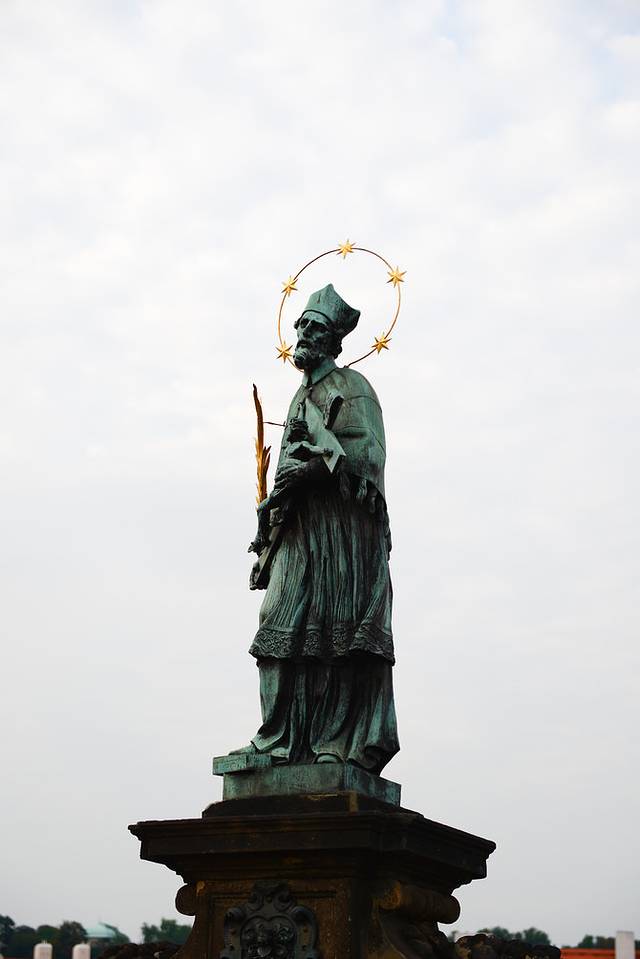 查理大桥上的雕塑,上图是St. John Nepomuk,当初被从这座桥上扔了下去,后来成为了欧洲著名的河神