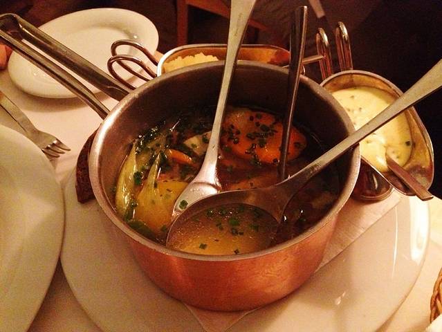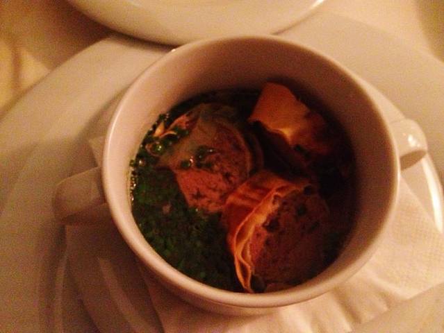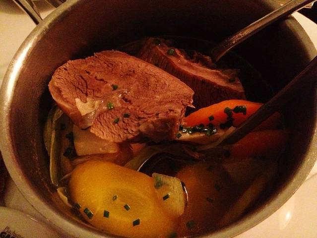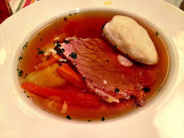 牛肉汤里配面团(这面团没什么嚼劲,汤和维也纳那款有些像,都是清澈型的,这边的偏甜一些)
