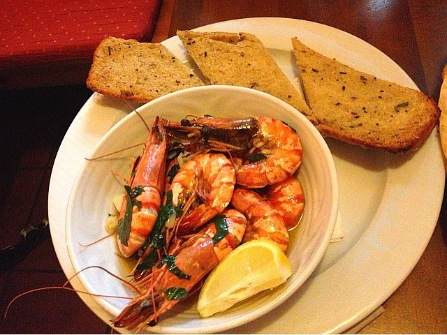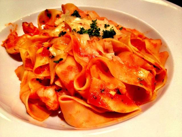 鲜虾PASTA 虾肉不多,但面条很劲道很入味!啧啧~
