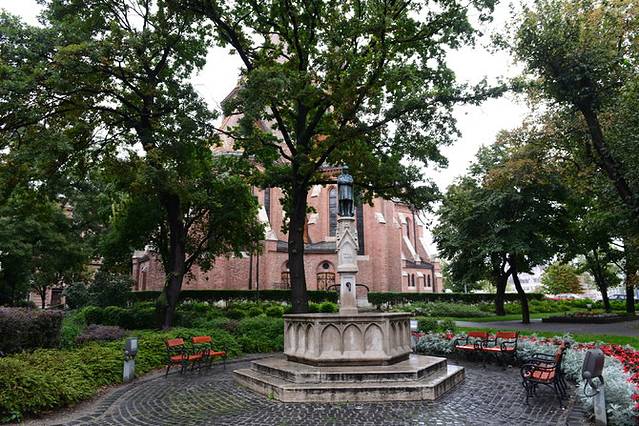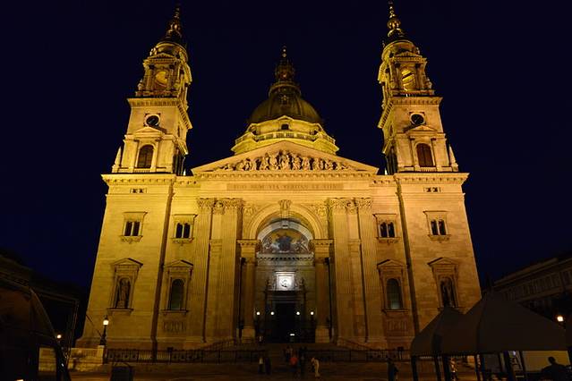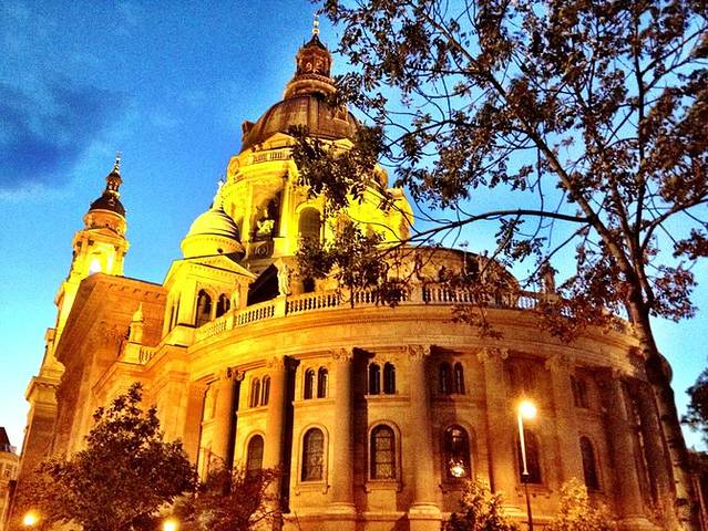 继续走,不一会儿就能看到著名的圣伊斯特万大教堂,这个教堂就在瓦茨大街的头上,也是地铁M1沿线的景点。已经过了参观时间,晚上的教堂只对入内欣赏宗教音乐会的听众开放。
