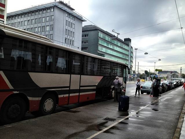临走时,天下起了小雨 是舍不得我们离开吗?我们真的很感恩,在这段旅行的大部分时间,都是阳光灿烂 从我们住宿的酒店到Orangeways大巴车站,只靠地铁U4不行咯,需要到Schwedenplatz换乘U1线到Praterstern 站下,会看到有一部分人往一个方向走,没错,那就是车站的方向(朝北走)^_^如果实在没方向,就靠手机GPS和嘴巴吧:)找年轻人问路比较好,因为年轻人会说英语的可能性大。我们到达车站时等候的乘客还不多,临近发车时间,突然好多人司机很仔细很认真地核对每一位乘客的护照信息和车票预订单,应该庆幸提前买了车票,否则肯定就没座位咯!PS 提前网上买票还可以选座位哦!大巴上没有无线网络,座位间隔不大不小,3个多小时还是可以熬过来的。