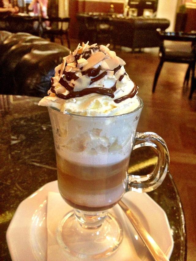 大气的咖啡馆,墙上的玻璃镜面扩大了空间感(若不是亲临,我压根不会把这里和咖啡馆联系到一起)