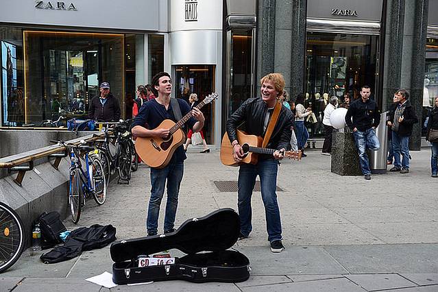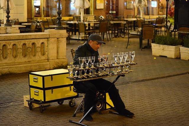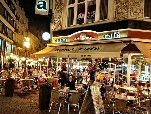 当我们走到网上推荐的盖式咖啡甜品店附近,突然就闻到一丝异国风情的气息了,原来这里就是瓦茨大街北端热闹的广场Vorosmarty ter,咖啡馆、酒吧人声鼎沸,街上随处可见行为艺术表演、乐器演奏和魔术,再往前过两个路口,你就能看到多瑙河与链子桥。