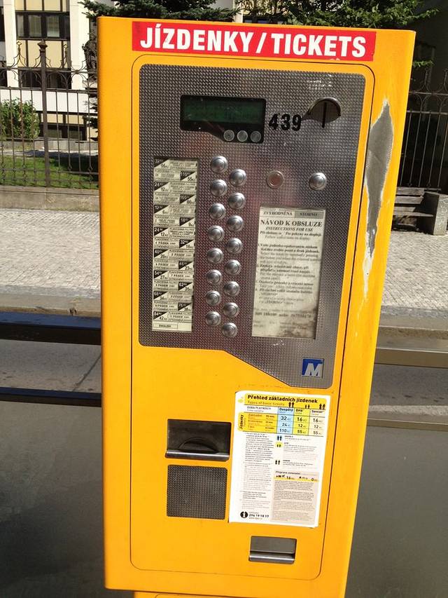 出机场后找到机场快线车站,一人60KC(相当于人民币20元)就能到市区了,前门上车在司机处买票即可。车子开到市区大约半小时左右,到达主火车站附近,然后我们按照之前做好功课的路线,坐地铁绿线向旅馆进发。我们在布拉格呆4天3晚,所以买了3日票(310KC),鉴于买票时是下午3点,最后一天4点我们还在坐地铁,那次我们还老实地买了一次票。。。结果3天多内我们邂逅了两次带着奇怪指环的查票员,很酷地在出口处向乘客亮出戴有这枚指环的手,瞬间收回,仔细查票。布拉格城市不大,很多地方步行即可,所以它的地铁线路相比维也纳那是相当简单,很容易记住,只要做好功课了解下每个景点相对的捷克语站名就好,因为地铁站的站名不是英文的哦!