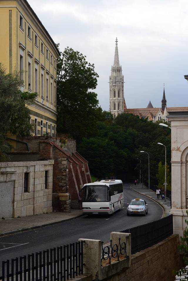 山上的道路,16路公交车就在这条路上行驶。那尖顶就是马加什教堂。