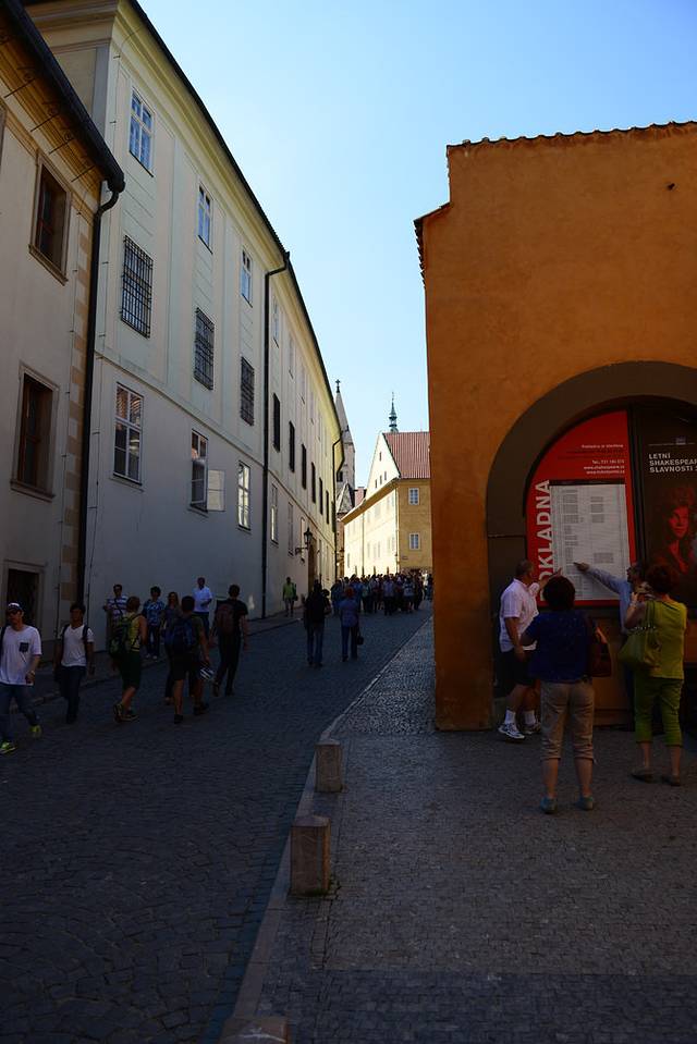 吃完早餐,出发去城堡区。从我们的旅馆到城堡区的交通也很方便,地铁绿线坐到MALOSTRANSKA站(旅馆在地铁黄线、红线附近的童鞋,可以分别在MUSTEK站和MUSEUM站换乘绿线)下,出地铁口即可看到公交22路,搭上22路就可以直接到城堡区门口。布拉格的公交车都是有轨电车,很漂亮,宽敞稳当,3日票随便坐^_^城堡区游客很多,所以22路比较拥挤,车子快速平稳地在盘山公路上行驶,一会儿就到了。