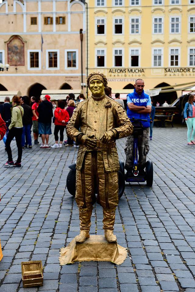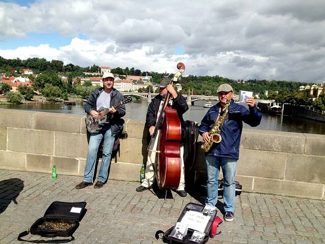 走出巷子,城堡区的精华部分也就结束了,再到其他小景点参观一下,时间一下子过去了,出城堡区时已是下午4点左右,我们先坐地铁回到旅馆稍作休整,拿上三脚架来到查理大桥,走走拍拍,欣赏夕阳西下时的伏尔塔瓦河 桥上艺人有演奏的、画画的、设计可爱的手工艺品的......据说有资格在桥上卖艺的都是过五关斩六将经过层层选拔的