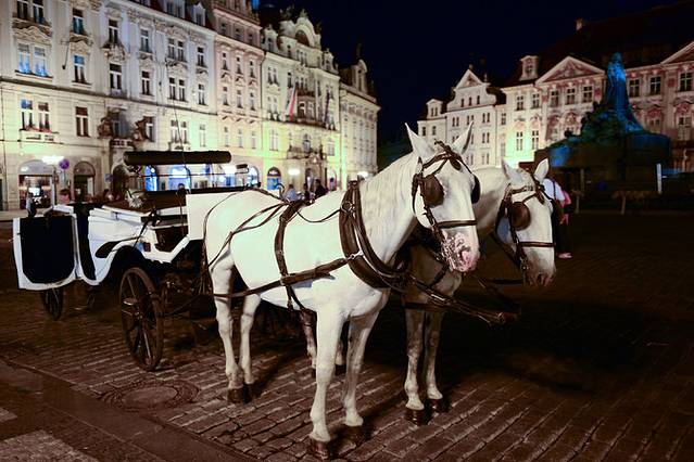 饭后随着人流走到了老城广场,马车映入眼帘,很酷^_^天文钟、提恩教堂附近游人最多,捷克护肤品牌菠丹妮的总店则已关门。兜兜转转已经晚上9点,也许是时差的缘故,身体疲累,便坐地铁回旅馆休息了。