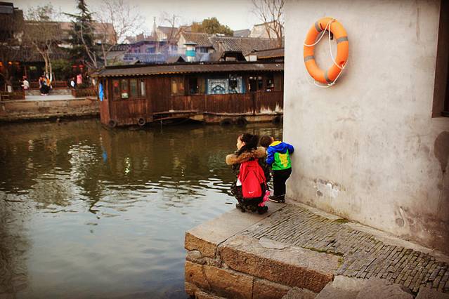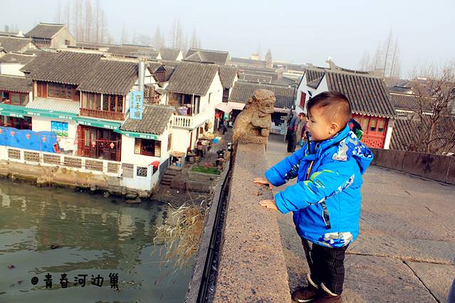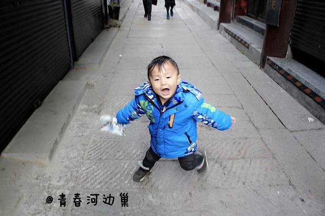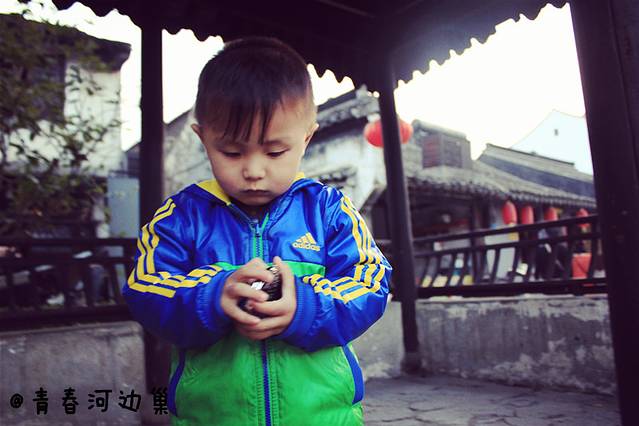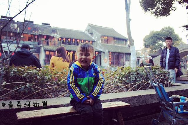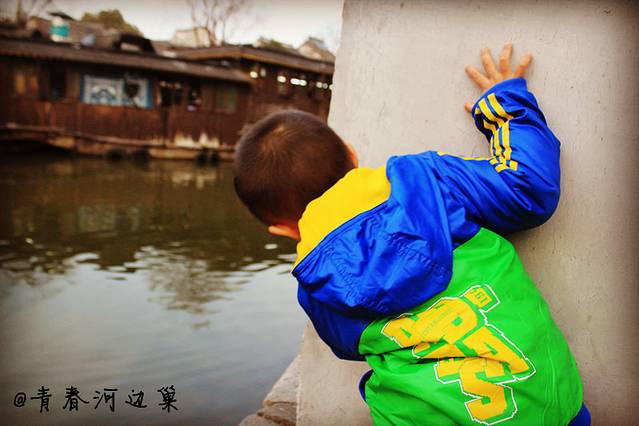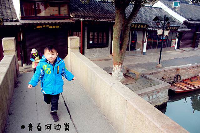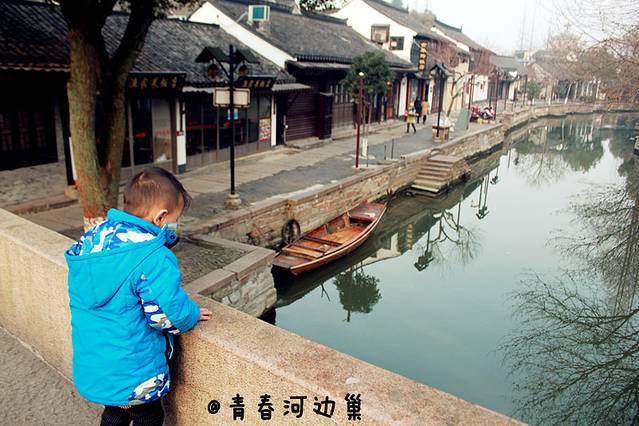 2、西塘两边的街道基本上没有什么围栏,所以一定不能让小孩子接近水边,当然了横冲直撞是最要不得的。一定要避免,有时候小锟就喜欢乱跑,我总会牵着他的小手,一刻也不敢松懈。