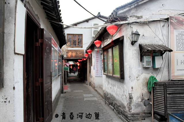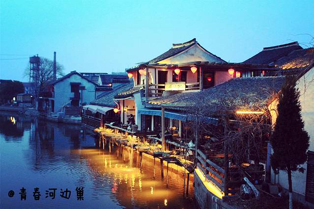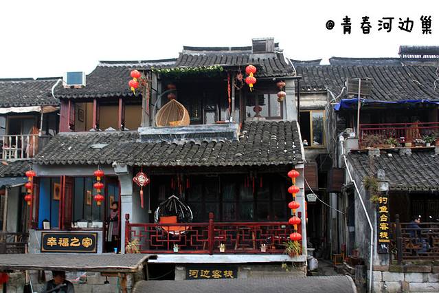 看着两边的夜景,一条街是沿街的小铺,另外一面则是各种各样的客栈,想来也觉得很有意思。其它的古镇都是街道在两边,中间小河有着来往的船只,但是西塘却不是这样。客栈的这一面彷佛就是给游客欣赏的,各种各样,特色有质。我甚至有些后悔,为什么没有去订一间这样的客房。