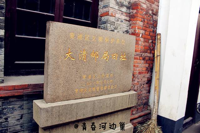 大清邮局分为上下两层,里面是邮局的一些发展历史和历史物件。在一层的外面,可以看到小河流水。稍微休息下,坐在这里看看风景是不错的选择。小锟自是不会闲着,一直处于兴奋的状态,跑跑跳跳,走走停停。另外清朝的服饰也挂在墙上,更增加了这里的历史韵味。