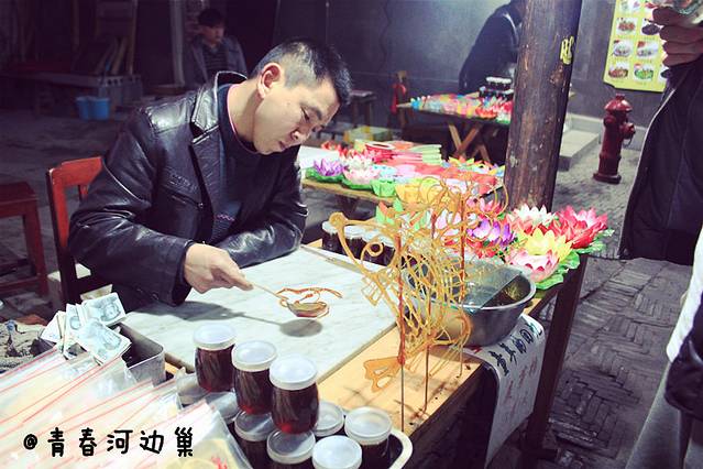 我买了诸多,看我吃的多开心。同行的小弟买了麦芽糖,好大一只牛,只是他太浪费了,只是吃了几口。小锟对这些小吃都没有吃的欲望,我只好给他吃正餐。小弟则是自己出去逛了一圈,吃了特色的米线。