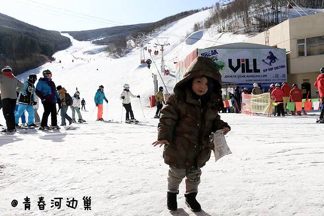 因此锟爸自行滑雪,我带着小锟到处游逛。其实滑雪场人不少,不过风景也很美。看着滑雪爱好者那么娴熟的动作,虽然我觉得很酷,但是也不太感冒。小锟看着他们,不能说感兴趣吧,但是也会去瞧瞧。