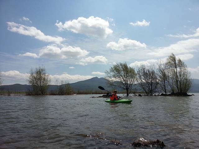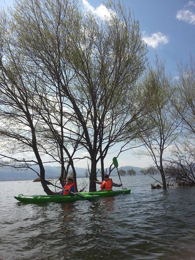 你如果是对骑马有大期望的GGMM,你一定要让客栈帮你联系一家靠谱些的马场,不要回到家中暗自呕气。当然,不要对马场中午的午餐有过高的期望哈,因为马场必竟不是专业从事饮食的地方,你就抱着他是赠送的角度,满意度顿时会提升很多。我们是客栈帮着联系的(骑马加上单人划橡皮船每人收费150元),算是一家正规的旅行社吧,还有导游引导大家,午餐时还不时为各位加菜,菜品一般,但份量还是管够的。马帮的名字是好象叫“福升马帮”。划船也是,你要贪图价格便宜,那就只能坐那种大大的铁皮船,有船夫带着十来个人,象征性的在附近水域逛上一圈就回,对爱运动,体力棒,童心重的朋友,一定不要贪便宜,千万要选用一个人的皮划艇,真的是好过瘾!当然,你是情侣,还有两个人划的那种,也很有意思,但是一定要有默契哦,因为我看到有对情侣,因为配合的问题,两人都弄得湿呼呼的,呵呵,也许这样的旅行更让人有所回忆吧。
