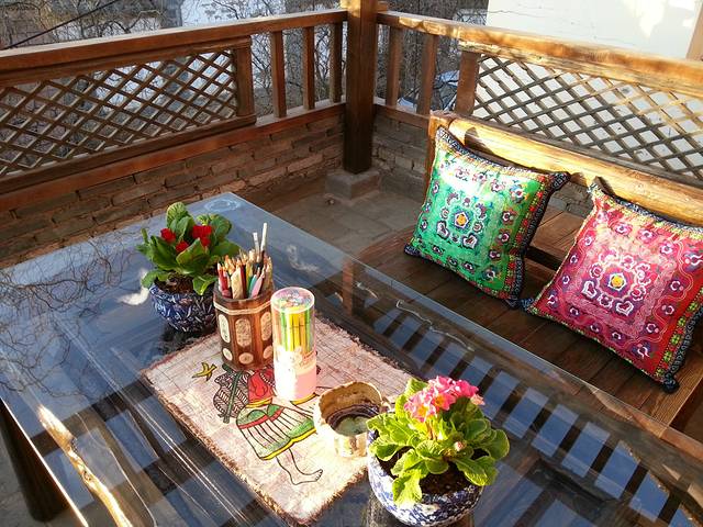 在吉相家二楼的露台上,或远眺玉龙雪山,或随意从书架上选一本书翻阅,时间就会在指尖不经意的溜走。
