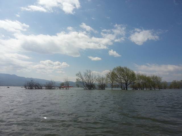 水浅的时候,柳林会露出水面,我还是喜欢水面宽阔的拉市海。