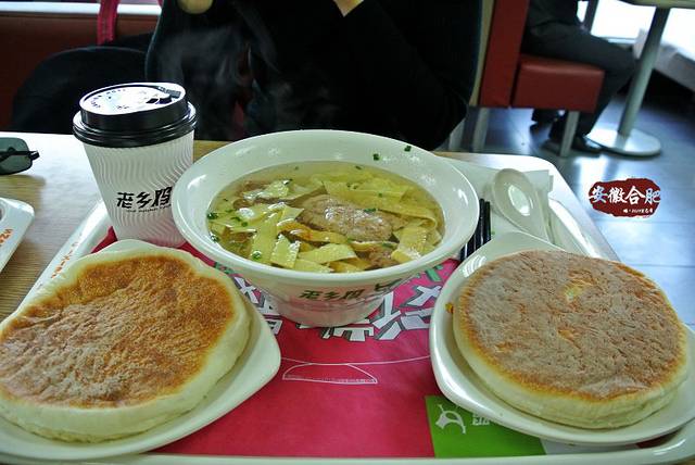 从这里步行到梨花巷的风波庄,路上途径庐州烤鸭店,也是被很多人推荐过的餐厅,点了赤豆羹和鸭油烧饼,觉得超级好吃!风波庄是在一个简陋的小巷里面,门帘不算大,说实话环境很简陋呀,不过菜品味道还可以,大力丸很好吃,在北京也有分店但是一直没去过。吃过晚饭就打到回府啦,不过晚上合肥真心不好打车,等了好半天才打上一辆,堵车也不比北京情况好多少。