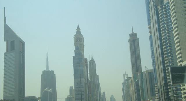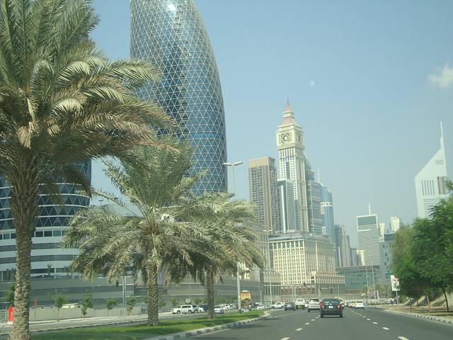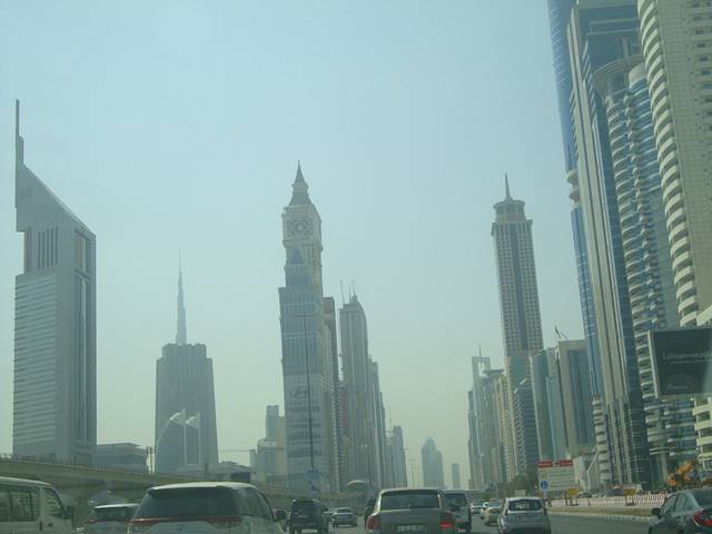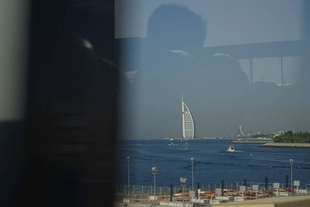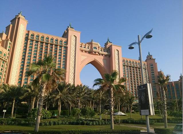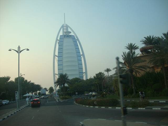 晴空万里,这几乎是迪拜每一天的写照。10月中旬的迪拜仍然有将近40度的高温。坐车去迪拜酋长皇宫的路上,灿烂地阳光下,千楼竞秀,你就像在观赏一个在T台表演的世界顶级现代建筑秀,一座座美轮美奂的现代建筑奇迹般地矗立。崭新的高楼全是近几年刚刚落成的,而且每一个都风格独特,出自世界著名设计师之手,离不开这座城市外在给人的奢华调子。