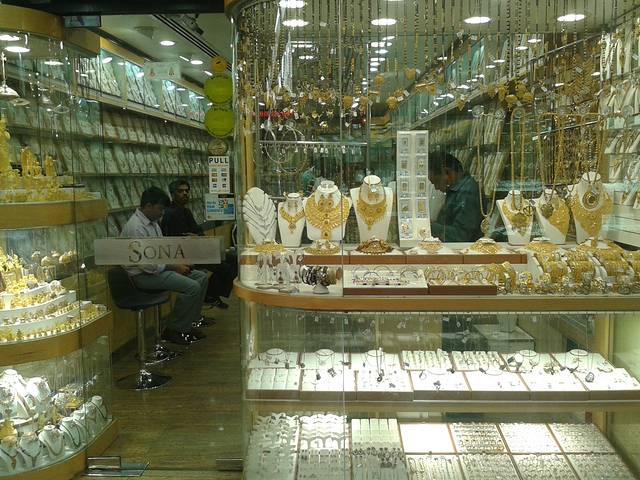 迪拜的“黄金街(Gold souq)”也是非常著名的,这也是世界上驰名的黄金购买地,迪拜有着世界上贸易量第二的黄金市场。在迪拜的“黄金街”里,,大大小小的金店充满这里的每条小巷,窗户明净,与闪闪发光的手镯、项链和耳环交相辉映,恍如一张金色窗帘。逛一遍下来,发现这里大部分黄金首饰都18K和22K的,而且其实价格并不像传说的那么便宜,每克22K的金价要快赶上国内千足金的价格了,主要原因还是其工艺好,好多黄金首饰都是由当地的艺术家手工制成的,所以手工费会高些,这里的工艺绝对是国内无法相比的,只要你想得出的形状,这里也就能做得出来。