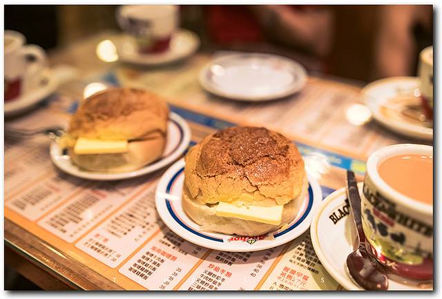 从新世界出来,穿插到旺角,去了一家相当火爆的茶餐厅——金华冰厅,外卖菠萝油都需要排队呢。他家的本地人非常多,我们到正好是下午茶时间,买了两个他家特别推荐的菠萝油(菠萝包夹黄油),超级赞!