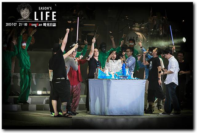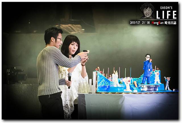 准备吹蜡烛了,全场在嘉宾的带头下唱生日歌送给 Eason,好感人的场景