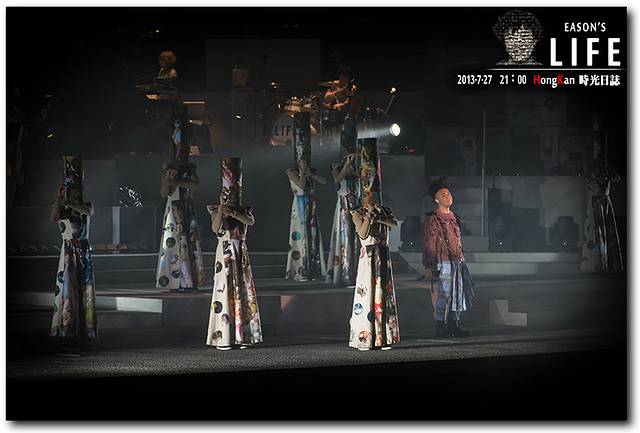 场地开阔的话,烟花就不会少。烟花易冷,时光催人老。成都时,Eason的嗓音受到场地扩音效果的影响,没有2009年北京演唱会惊艳,但,2013年的红磡,Eason嗓音明显已经沙哑,可能是场次太多,也可能是岁月带走了他最美丽的时光。