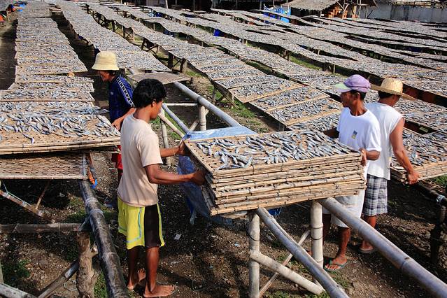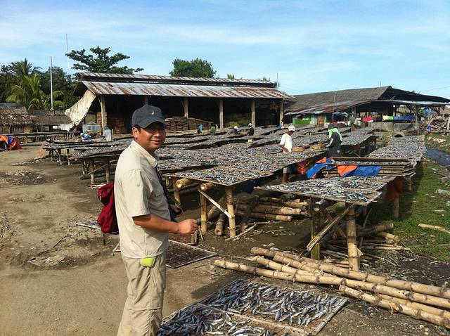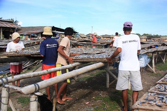 第一天晚上住在朋友家附近的宾馆里。12月份,天气还是非常炎热,冷气开得很大,睡得特别香。第二天,去朋友公司的渔业工厂,这是工厂里晒鱼场。三宝颜是菲律宾重要的渔业基地。三宝颜的名字来自马来语,意思是“鲜花之城”“三宝颜”中的“三宝”是一种蒿杆,在潮水低的时候用来撑船的。