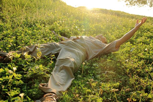 空气仿佛被洗涤过,清新得让人产生幻觉,在纯净的海边,连小草身上,都是一尘不染。在无远弗届幽境,在无边无垠的清香中,我醉倒在草丛里。