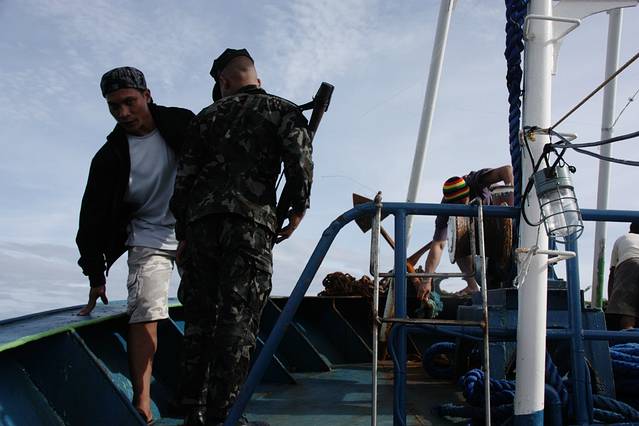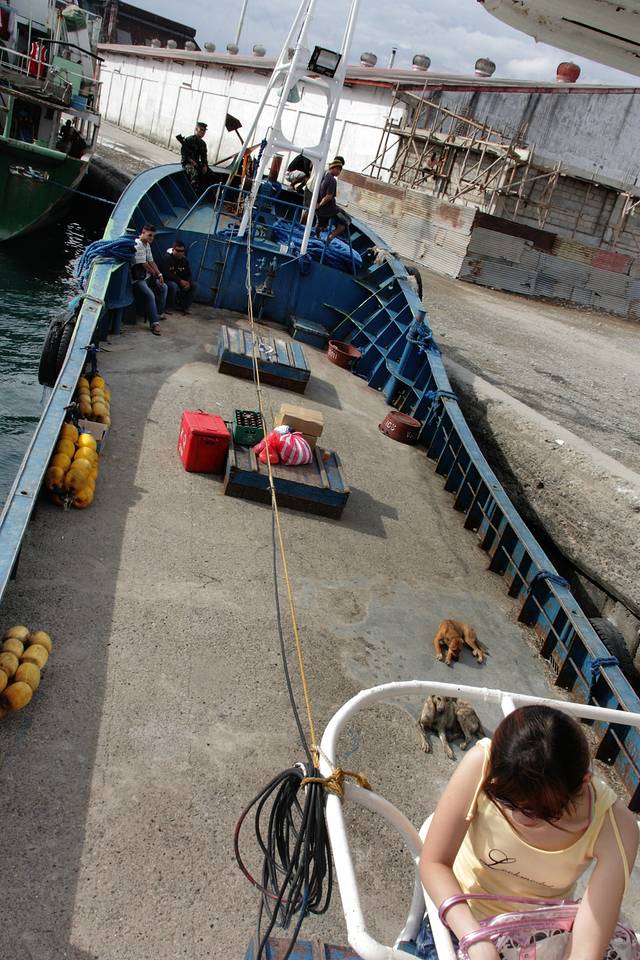 第三天,我们坐上朋友阿坚的船,去三宝颜附近的岛屿。由市区出发约25分钟船程便可到达一个颜色非常独特的岛屿——圣十字岛(sta cruz island),岛的四周都是粉红色的珊瑚礁沙。三宝颜有19个海港和码头,12个是私人的。我们这次去的,是三宝颜的萨马岛(samal island)是游泳和潜水胜地。