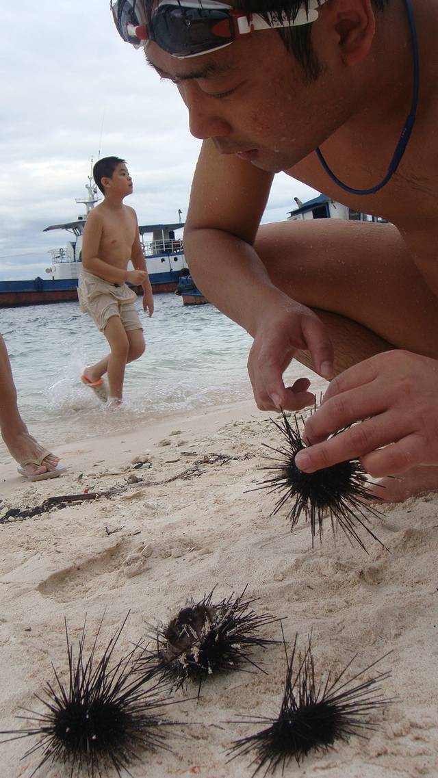 海边充斥着这种海胆,很容易刺伤脚,这种海胆不能吃。