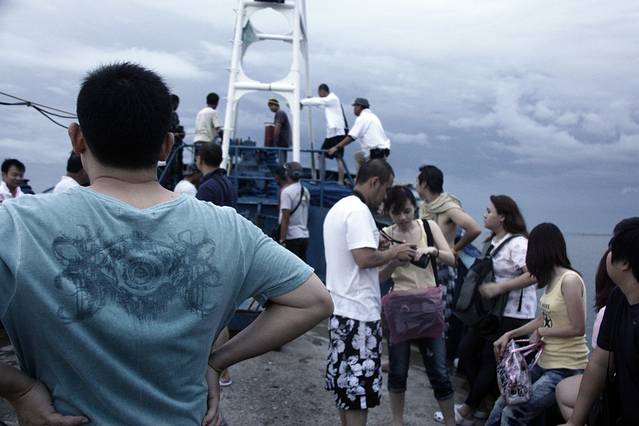 我们开着阿坚的船,在海上行驶了2个小时,靠近小岛的时候,换一艘小船上岸。英语是菲律宾的官方语言,但听菲律宾人讲话却感到有些吃力。一打听才知道,他们的话里混杂着塔加洛语、英语和西班牙语,经常一句话中用到三种语言词汇。原来,当地人对这三种语言驾轻就熟,可以随意组合。据说在菲律宾呆很多年的外国人,也不能熟练掌握如此复杂的语言。