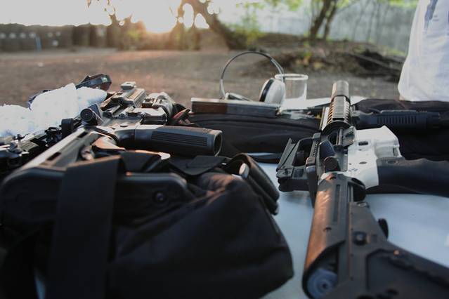 第二天一早,朋友带我们去商店里买子弹,带了很多枪。坐上CUV,我们进发了。三宝颜海军军事基地。