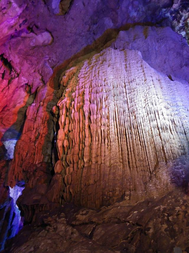 银子岩作为四星级景点,是溶洞景区,蛮漂亮的各色钟乳石,但对于去过张家界黄龙洞等溶洞的我感觉也是大同小异,洞中超级热,有二十多度,全程跟着导游走一趟下来要花上一个小时,从洞底到洞顶要爬十六层楼的高度((유∀유|||))你能想象穿着大棉衣在二十多度中爬楼的情景么((유∀유|||))而且肤浅的我对于没有划船项目有点不满233