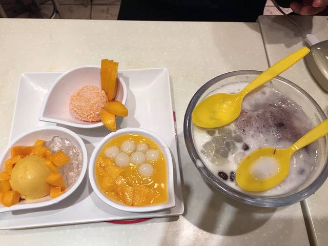 店面很小,这个芒果的甜品好吃,这个红豆大小肉圆很普通