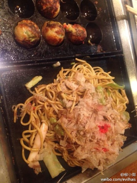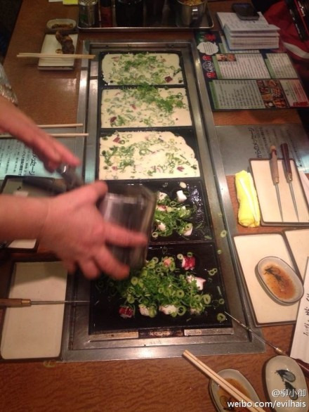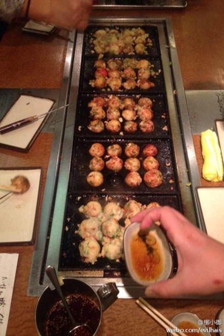 而这家算是大阪最有名的自己料理的章鱼小丸子,排了1个小时的队伍才伦到我们挤在小小的餐桌上,吃过章鱼小丸子,也没自己动手做过,再看看章鱼料,真心想说,国内的章鱼小丸子里连章鱼丢丢都没有,超级好吃,一口气二十多个,再加炒面,实在是大满足,不白白等那么长时间。