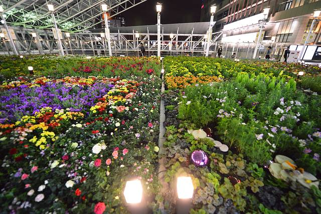 原来农场不只是在地上,大阪车站从商场上去一路闲逛从时空的广场,上到风的广场,直至楼顶天空の农场别有洞天,可以俯瞰大阪美景,又可以看到季节限定的花花菜菜,绝对的有机无公害,可惜不能采摘,也不卖~