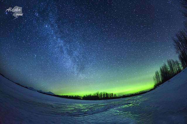 以前在网上看到这两张图片就觉得极光的微妙!!可惜入夜的费尔班克斯虽然寒冷但还没有白雪皑皑~~