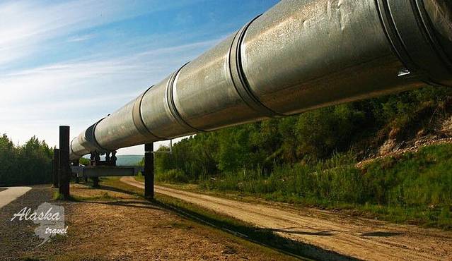 下午02:00pm我们将参观人类又一项伟大而艰难的创举:纵穿阿拉斯加南北的输油管道。建造这条全长1300公里的输油管道面对了种种挑战。除了恶劣的气候条件外,输油管道还要越过三座山脉、无数条大大小小的河流以及永久冻土层,因而近半条输油管道要架空兴建,而非埋于地下,以防止冻土层融化因而产生的移动。这个观光点其实没什么看点,但是了解一下人文历史也算拓展了我的知识面。人类的智慧还是无穷尽的。发现问题,然后执着于解决、完善,我想区别成功与失败的点就在于是否有一颗力求完美的心!