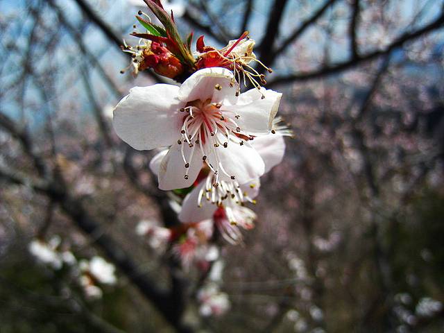 凤凰岭的杏花,本来没报很大希望的,主要是我们比计划晚了一周才去,而刚刚爬山的时候也没有太多希冀,因为山脚下秃秃的,可以看到很多花朵已经凋谢的样子,不过爬着爬着,便越来越欣喜了,哈哈,那漫山遍野的山杏啊,真心是置身花海的感觉。不同于平谷桃花那种人工种植造出的感觉,这里的山杏都是长在崖间石缝里的,没有人工的痕迹,自然的,甚至可以说有些杂乱的生长在那里,一派天然而成的美丽……吼吼~~不会形容,分享下美景吧~~不过其实因为花实在太多,又杂乱,自己这技术不会拍,拍了好多片子,选择的时候却很难选出当时那种置身花海感觉的,呵呵,大概选了几十张……
