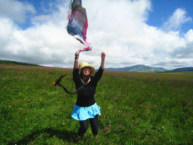 哈哈,山顶还是很冷的,大风,加上前一天的雨,这水分蒸发起来吸走的热量可是不容小觑~~同行的都有的禁不住租了棉大衣,我这个既不怕干热也不怕阴冷就怕闷热的还好,这个天气刚好是大爱~~