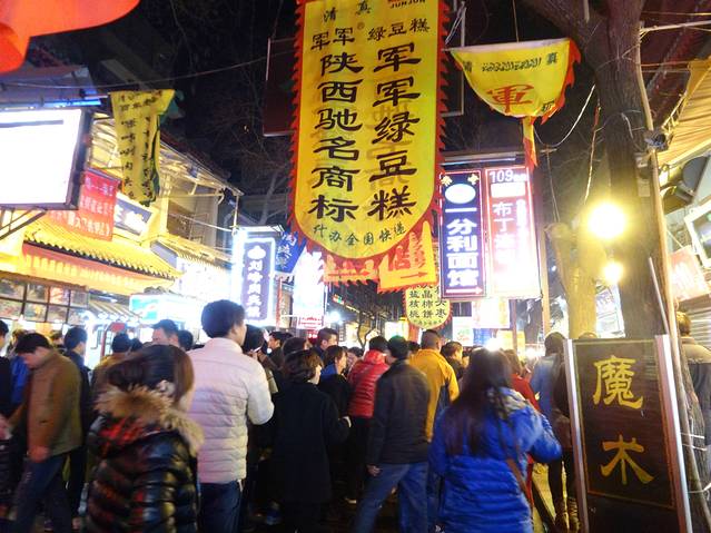 回民街呀,魏家凉皮,军军绿豆糕、各种老字号招牌