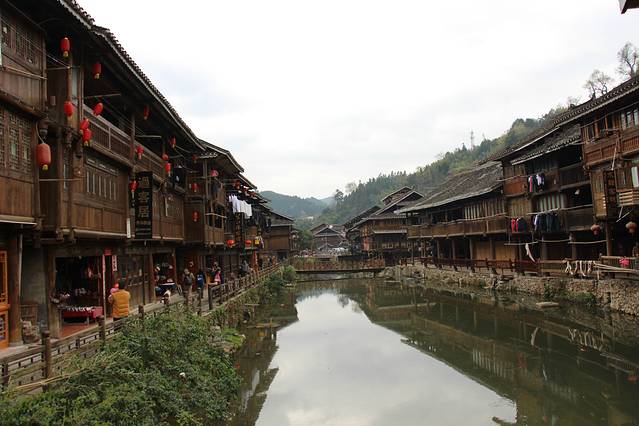 寨子里下来之后逛了县城,县城只有一路车在循环行驶,迷你县城。县城有一条江“都柳”贯穿而过,为小城增了不少韵味,江岸一边是商业街,衣服、鞋子、黄金首饰、不一而足,县医院也屹立在侧。另一边宾馆,旅店,饭馆以及汽车站。这是一个用步行就可以到尽头的小城。而唯一吸引我们的就是也被清而见底的江水吸引着。在河岸上撒欢了好久,还偶遇一对姐妹花,给她们拍了好些照片,可是没有电脑没有微信没有照相馆,照片给不到她们,遗憾。