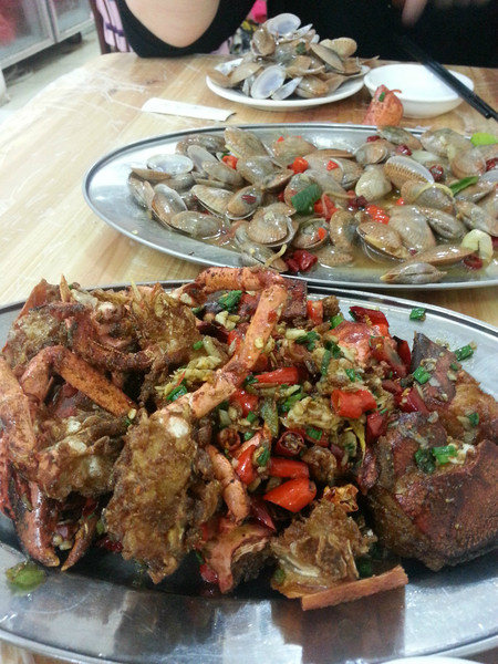 亚龙湾沙滩待得也差不多了,看了一下时间,得在公交末班车之前回市区~于是我就坐车回去啦。回到宾馆以后放下相机包去第一市场找了一家海鲜加工店,我们也算是慕名而来的,听朋友说还挺不错的。