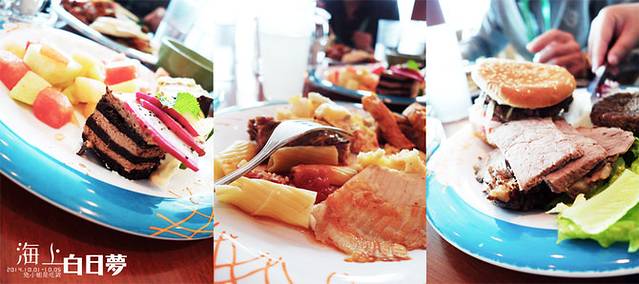 在几乎全满的自助餐厅,可以找到这样一个位子,是多幸福的一件事。