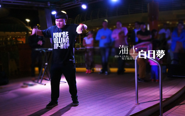 本来看完演出就准备回房间早早睡觉了,没想到我爹特地来告诉我们甲板超热闹。